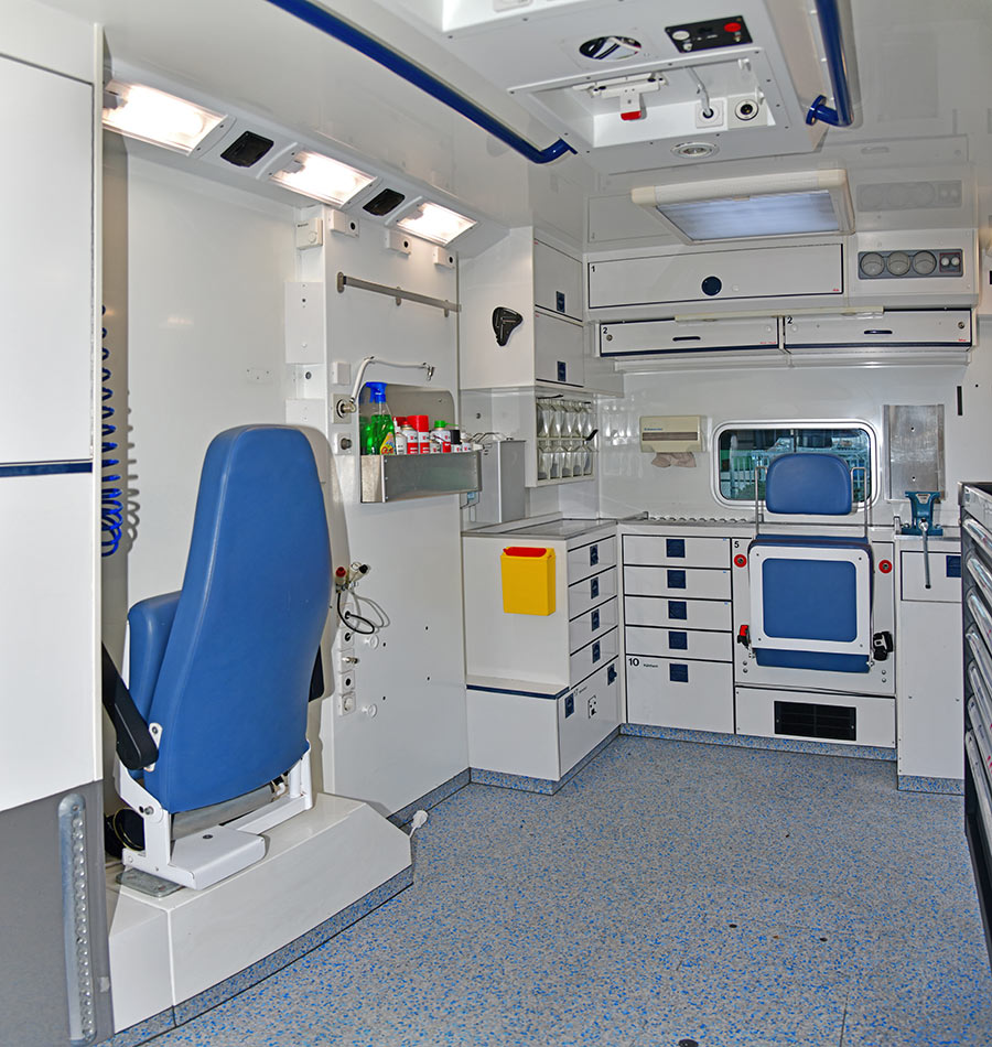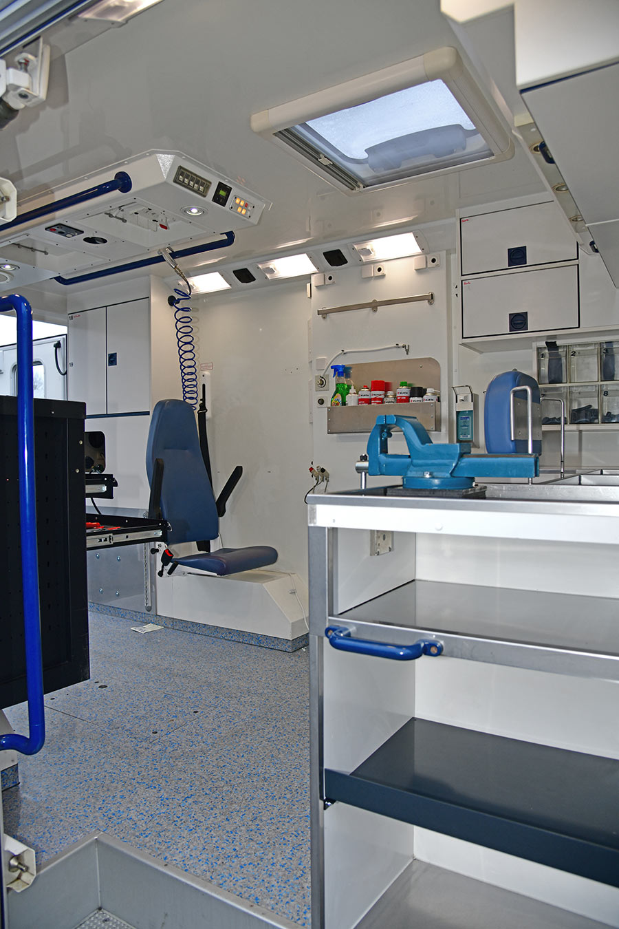 Das Servicemobile, ein ehemaliger RTW ist mit einer Auswahl häufig benötigter Ersatzteile bestückt. Der Clou an dem Fahrzeug ist, dass wir wetterunabhängig (sowohl Heizung als auch Klimaanlage sind an Bord) arbeiten und unsere Kunden im Fahrzeug versorgen können. Ausreichend Platz erlaubt ein komfortables agieren und bietet gerade in der heutigen Zeit (Coronabedingt) durch die 1 zu 1 Betreuung ein hohes Maß an Schutz uns Sicherheit.