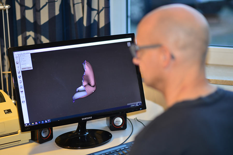 Der dabei entstandene Abdruck wird mittels eines 3D-Scanners abgebildet und gespeichert.
