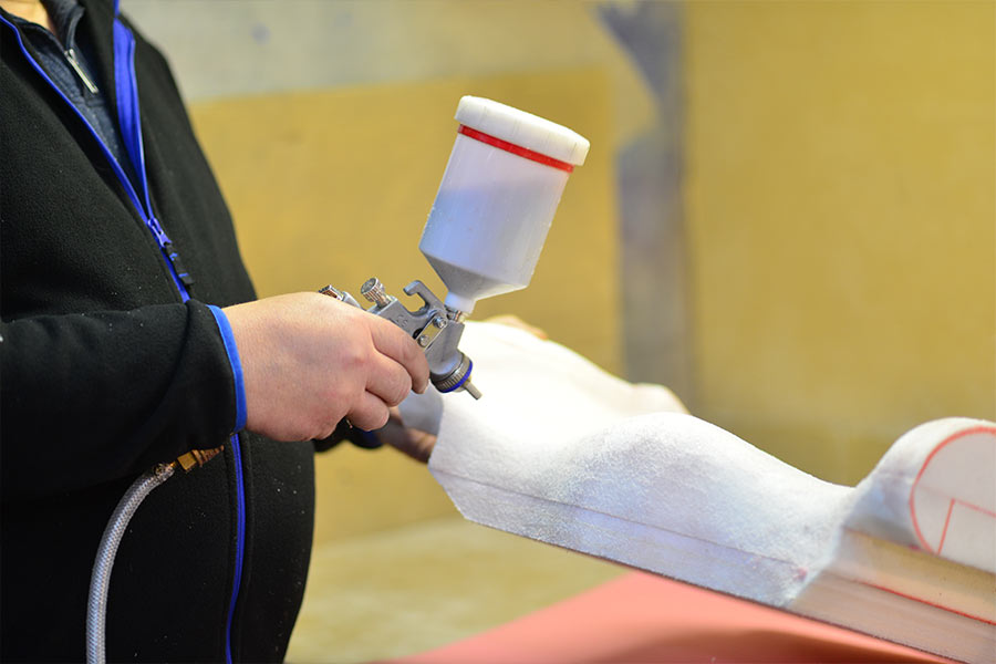 Mittels CNC-Frästechnik wird das 3D-Model des Vakuumabdrucks aus einem speziellen Schaumstoffblock herausgearbeitet.